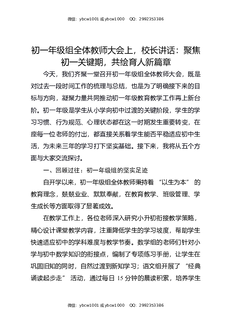 初一年级组全体教师大会上,校长讲话:聚焦初一关键期,共绘育人新篇章.docx