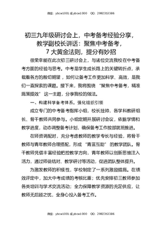 初三九年级研讨会上,中考备考经验分享,教学副校长讲话:聚焦中考备考,7大黄金法则,提分有妙招.docx