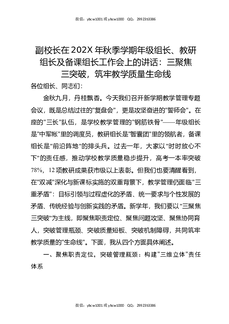 副校长在202X年秋季学期年级组长,教研组长及备课组长工作会上的讲话:三聚焦三突破,筑牢教学质量生命线.docx