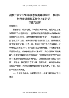 副校长在202X年秋季学期年级组长,教研组长及备课组长工作会上的讲话:守正与创新.docx