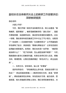 副校长在全体教师大会上的教研工作部署讲话:深耕教研提质.docx