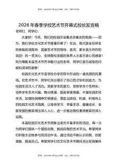 2026年春季学校艺术节开幕式校长发言稿.doc