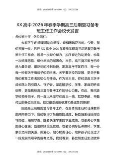 XX高中2026年春季学期高三后期复习备考班主任工作会校长发言.docx