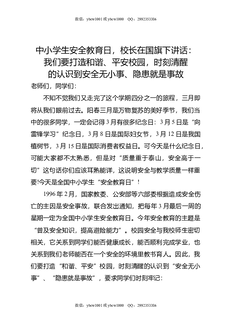 中小学生安全教育日,校长在国旗下讲话:我们要打造和谐,平安校园,时刻清醒的认识到安全无小事,隐患就是事故.docx