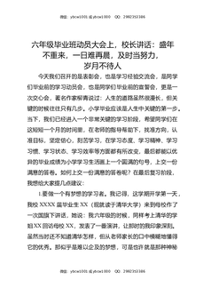 六年级毕业班动员大会上,校长讲话:盛年不重来,一日难再晨,及时当努力,岁月不待人.docx