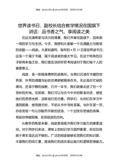 世界读书日,副校长结合教学情况在国旗下讲话:品书香之气,享阅读之美.docx
