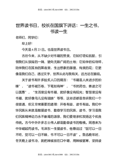 世界读书日,校长在国旗下讲话:一生之书,书读一生.docx
