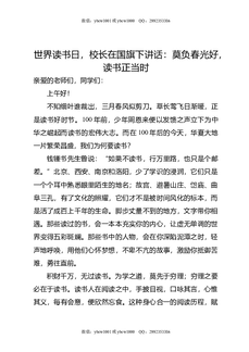 世界读书日,校长在国旗下讲话:莫负春光好,读书正当时.docx