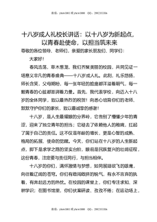 十八岁成人礼校长讲话:以十八岁为新起点,以青春赴使命,以担当筑未来.docx
