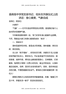 县高级中学党支部书记,校长在升旗仪式上的讲话:身心健美,气象自成.doc