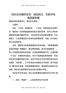 校长论坛精彩发言:规划先行,引航学校高质量发展.docx