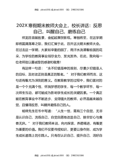202X寒假期末教师大会上,校长讲话:反思自己,叫醒自己,磨练自己.docx