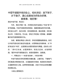 中层干部提升培训会上,校长讲话:放下架子,扑下身子,真心实意地为师生办好事,解难事,做好事!.doc