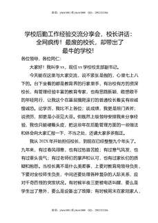 学校后勤工作经验交流分享会,校长讲话:全网疯传!最废的校长,却带出了最牛的学校!.doc