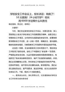 学校安全工作会议上,校长讲话:转疯了!10大措施!24小时守护!校长用6000字诠释什么叫责任.doc