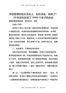 学校管理经验交流会上,校长讲话:传疯了!20年校长改变了3000个孩子的命运.doc