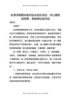 秋季学期期末教师会议校长讲话:尽心履职结硕果,奉献耕耘享甘甜.doc