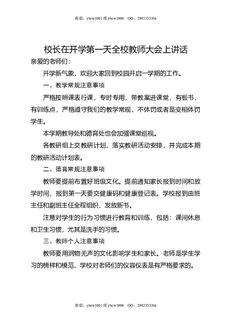 校长在开学第一天全校教师大会上讲话.doc