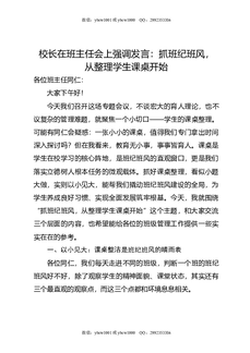 校长在班主任会上强调发言:抓班纪班风,从整理学生课桌开始.doc