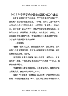 2026年春季学期分管安全副校长工作计划.doc