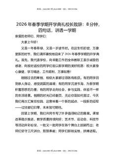 2026年春季学期开学典礼校长致辞:8分钟,四句话,讲透一学期.doc