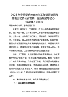 2026年春季学期教育教学工作暨师德师风建设会议校长发言稿:提质赋能守初心,铸魂育人启新程.doc
