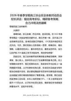 2026年春季学期高三毕业班全体教师动员会校长讲话:锚定高考新标,精研备考策略,合力冲刺决胜巅峰.doc