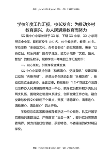 学校年度工作汇报,校长发言:为推动乡村教育振兴,办人民满意教育而努力.docx
