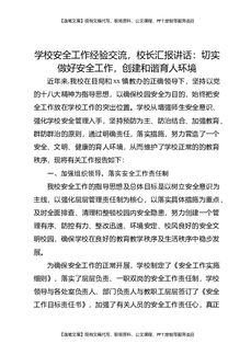 学校安全工作经验交流,校长汇报讲话:切实做好安全工作,创建和谐育人环境.docx