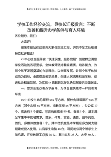 学校工作经验交流,县校长汇报发言:不断改善和提升办学条件与育人环境.docx