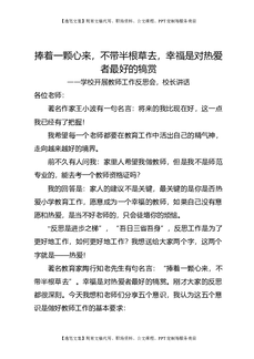 学校开展教师工作反思会,校长讲话:捧着一颗心来,不带半根草去,幸福是对热爱者最好的犒赏.docx