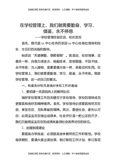 学校管理经验交流,校长发言:在学校管理上,我们就需要勤奋,学习,借鉴,永不停息.docx
