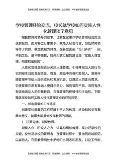学校管理经验交流,校长就学校如何实施人性化管理谈了意见.docx