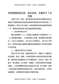 学校管理经验交流,校长讲话,主要讲了7点内容.docx