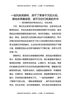 新老教师结对帮扶仪式上,校长讲话:一夜风高凋碧树,凋不了青春不灭的火焰。满地余寒露凝香,凝不住你们绝美的年华.docx