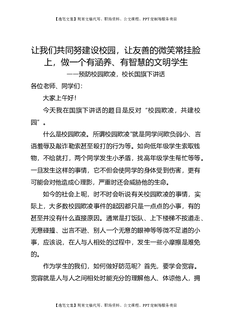 预防校园欺凌,校长国旗下讲话:让我们共同努建设校园,让友善的微笑常挂脸上,做一个有涵养、有智慧的文明学生.docx