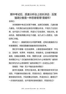 期中考试后,质量分析会上校长讲话:反复强调分数是一种恶意管理!是破坏!.doc