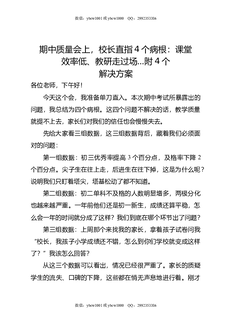 期中质量会上,校长直指4个病根:课堂效率低,教研走过场,附4个解决方案.doc