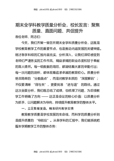 期末全学科教学质量分析会,校长发言:聚焦质量,直面问题,共促提升.docx
