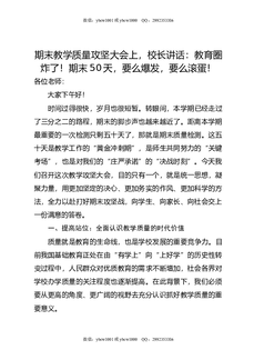 期末教学质量攻坚大会上,校长讲话:教育圈炸了!期末50天,要么爆发,要么滚蛋!.doc