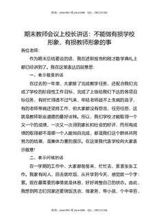 期末教师会议上校长讲话:不能做有损学校形象,有损教师形象的事.doc