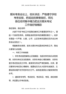 期末考务会议上,校长讲话:严格遵守学校考务安排,把规定的事情做好,拜托各位老师集中精力把这次期末考试工作做好做精彩.doc