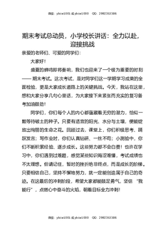 期末考试总动员,小学校长讲话:全力以赴,迎接挑战.docx