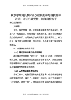秋季学期党员教师会议校长批评与自我批评讲话:守初心强党性,转作风促实干.doc