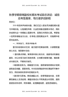 秋季学期德育副校长期末考试励志讲话:诚信应考显真章,笃行逐梦启新程.doc