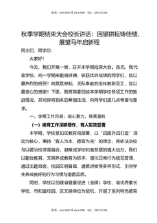 秋季学期结束大会校长讲话:回望耕耘铸佳绩,展望马年启新程.doc