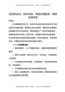住校生会议,校长讲话:争创文明宿舍,争做文明学生.doc