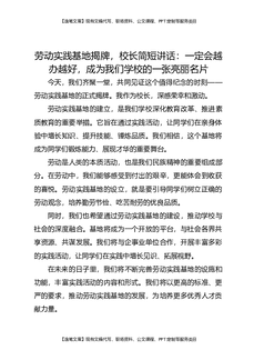 劳动实践基地揭牌,校长简短讲话:一定会越办越好,成为我们学校的一张亮丽名片.docx