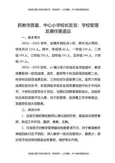 抓教学质量,中心小学校长发言:学校管理发展任重道远.docx