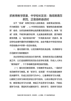 抓教育教学质量,中学校长发言:海阔潮涌百舸竞,正是扬帆奋进时.docx